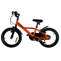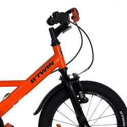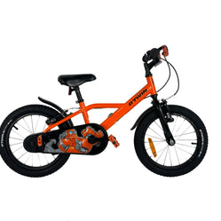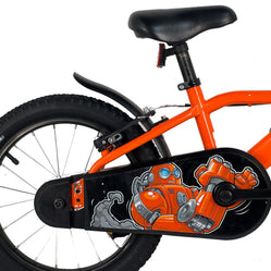 Bicicleta de 16" con salpicadera, caballete, neumáticos taqueados y timbre. Frenos adaptados a las manos de los niños y cubrecadena envolvente para circular con total seguridad.